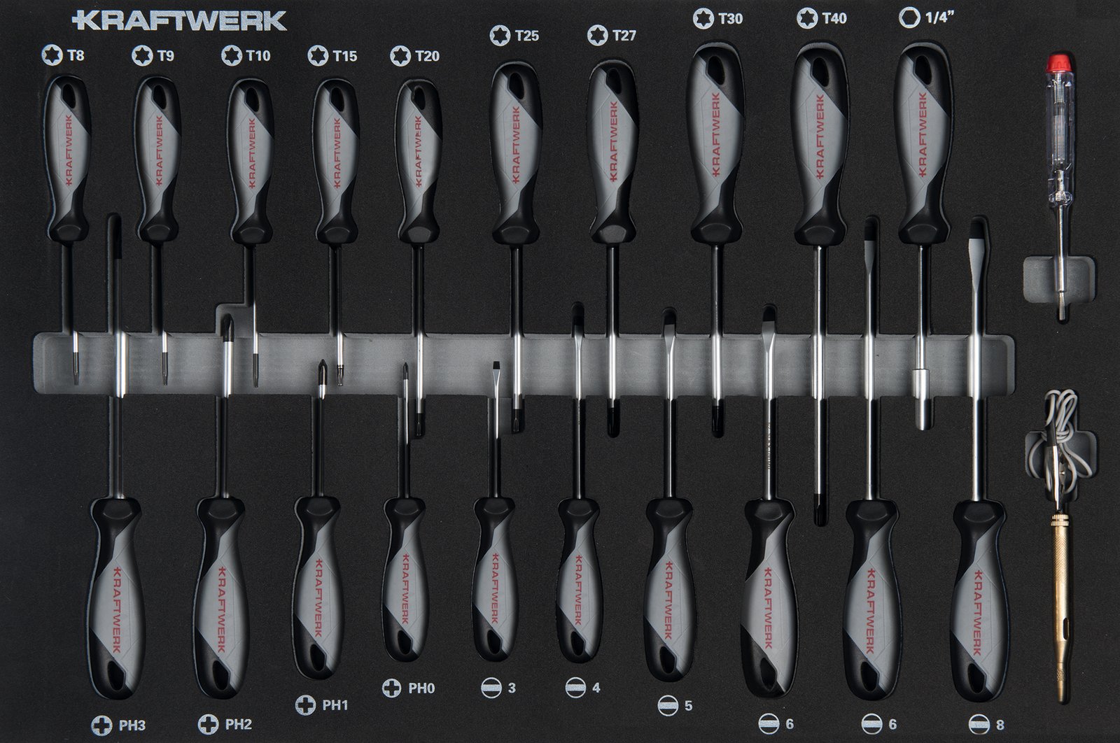 Atsuktuvo stalčius įrankių komplektas KRAFTWERK BASIC LINE EVA 60 × 40 cm, 22 įrankiai