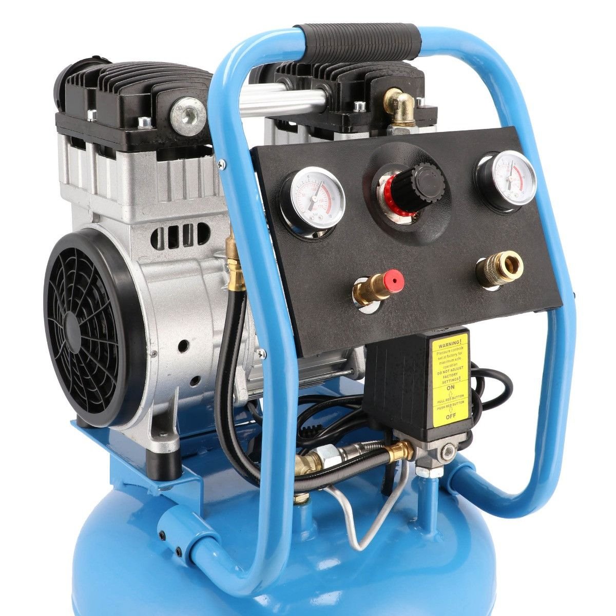- Bealiejis blokas – dvitaktė pompa su tefloniniu žiedu užtikrina švarų orą be aliejaus, nereikalaujant nuolatinės priežiūros.