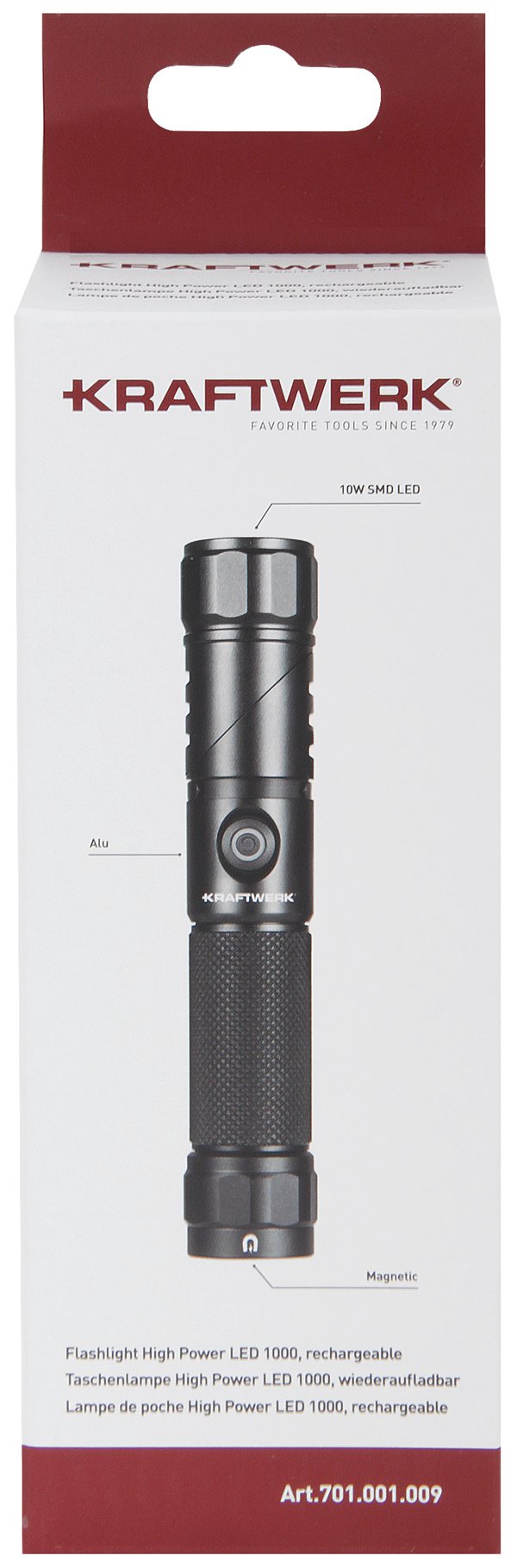 Galingas LED žibintuvėlis KRAFTWERK 1000, įkraunamas