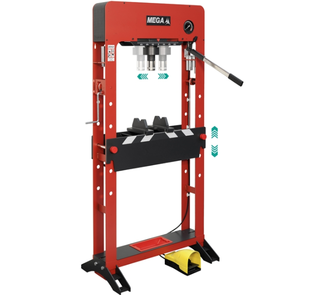 Titulinis | Produktai | Įrankiai, įranga ir medžiagos autoservisams | Autoservisų įranga | Hidraulinis dirbtuvių presas | Hidraulinis dirbtuvių presas MEGA PRD30NF su oro pedalu