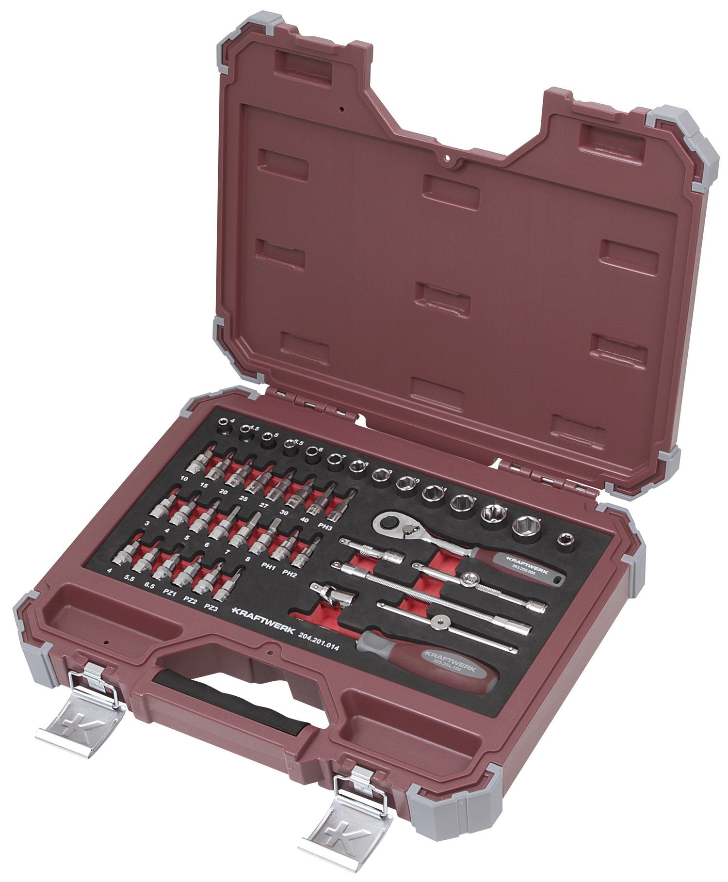 Įrankių komplektas dėžėje KRAFTWERK PRO LINE 1/4“, 44 vnt.