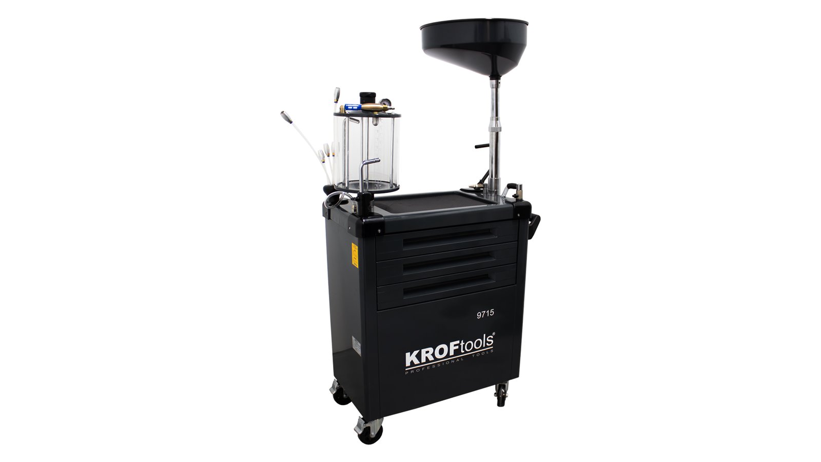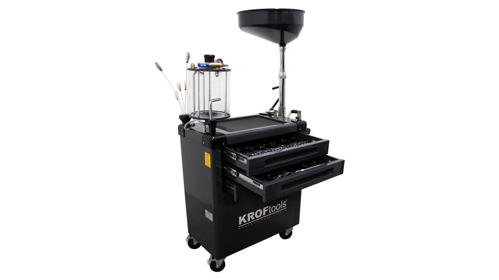 Įrankių vežimėliai su įrankiais ir alyvos surinkimo įrenginiu su matavimo indu KROFTOOLS 90 l, 61 vnt