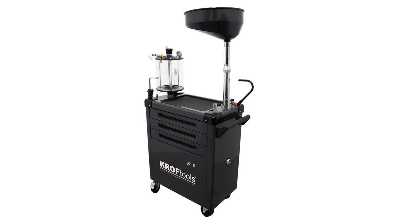 Titulinis | Produktai | Įrankiai, įranga ir medžiagos autoservisams | Autoservisų įranga | Įrankių vežimėliai | Įrankių vežimėliai su įrankiais | Įrankių vežimėliai su įrankiais ir alyvos surinkimo įrenginiu su matavimo indu KROFTOOLS 90 l, 61 vnt