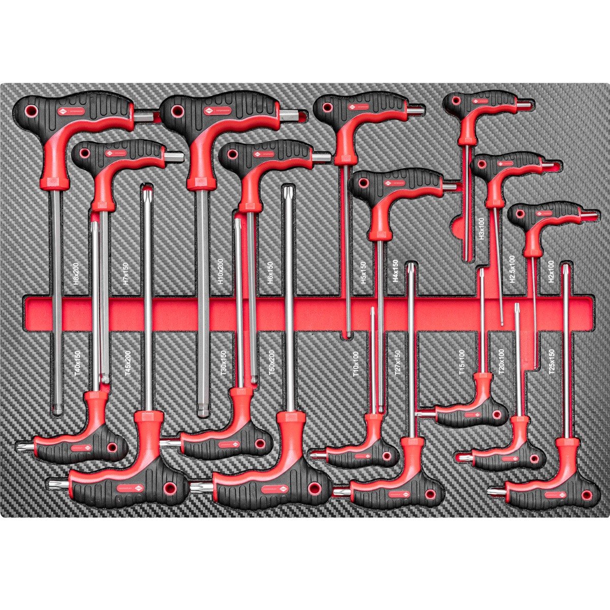 • TORX, HEX rinkinys su ergonomiška T formos rankena (18 vnt.)