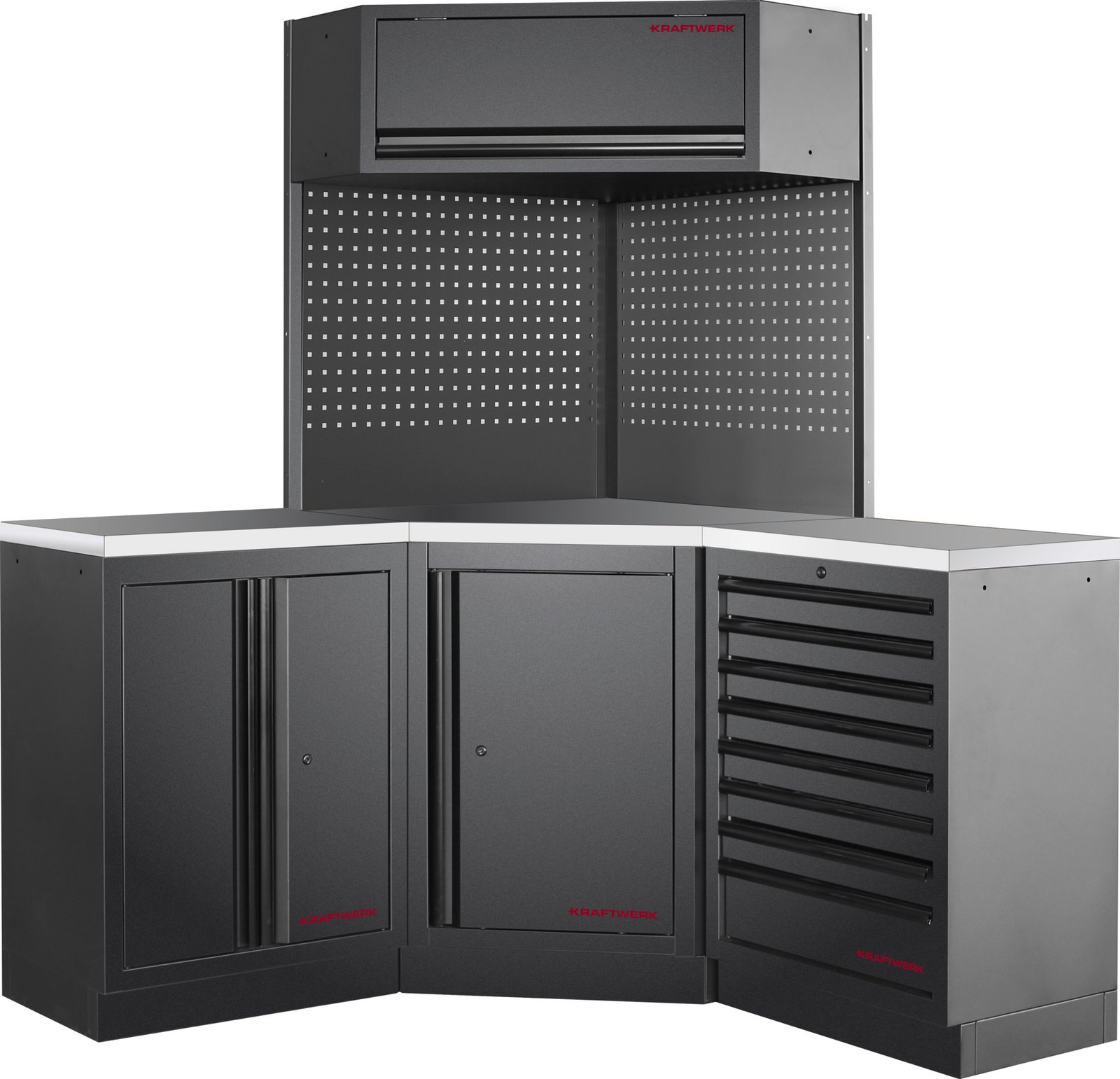 Titulinis | Produktai | Įrankiai, įranga ir medžiagos autoservisams | Autoservisų įranga | Baldai | Moduliniai baldai | Modulinių baldų komplektai | Modulinis darbastalis KRAFTWERK MOBILIO BLK-3, 3964R-BLK-IX