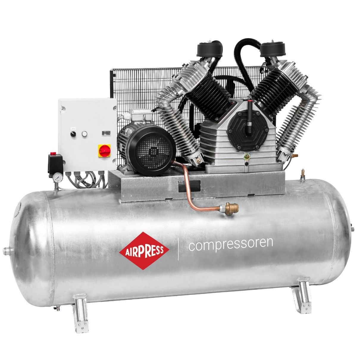 G 2500-500 SD Pro – profesionalus stūmoklinis kompresorius su 20 AG (15 kW) varikliu ir 500 l dvipusiu cinkuotu baku. Tiekiamas oro srautas iki 11 bar, tinkamas intensyviam pramoniniam darbui net drėgnoje ar korozinėje aplinkoje.