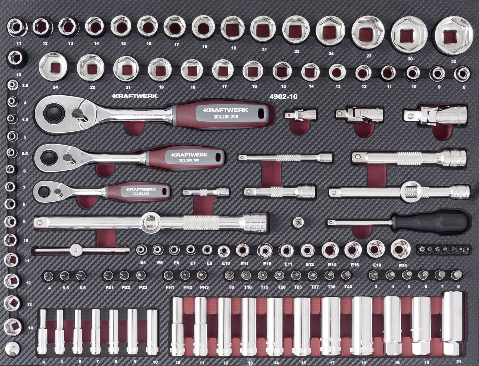 • Galvučių dėklas 1/4″+ 3/8″+ 1/2″, 125 vnt.