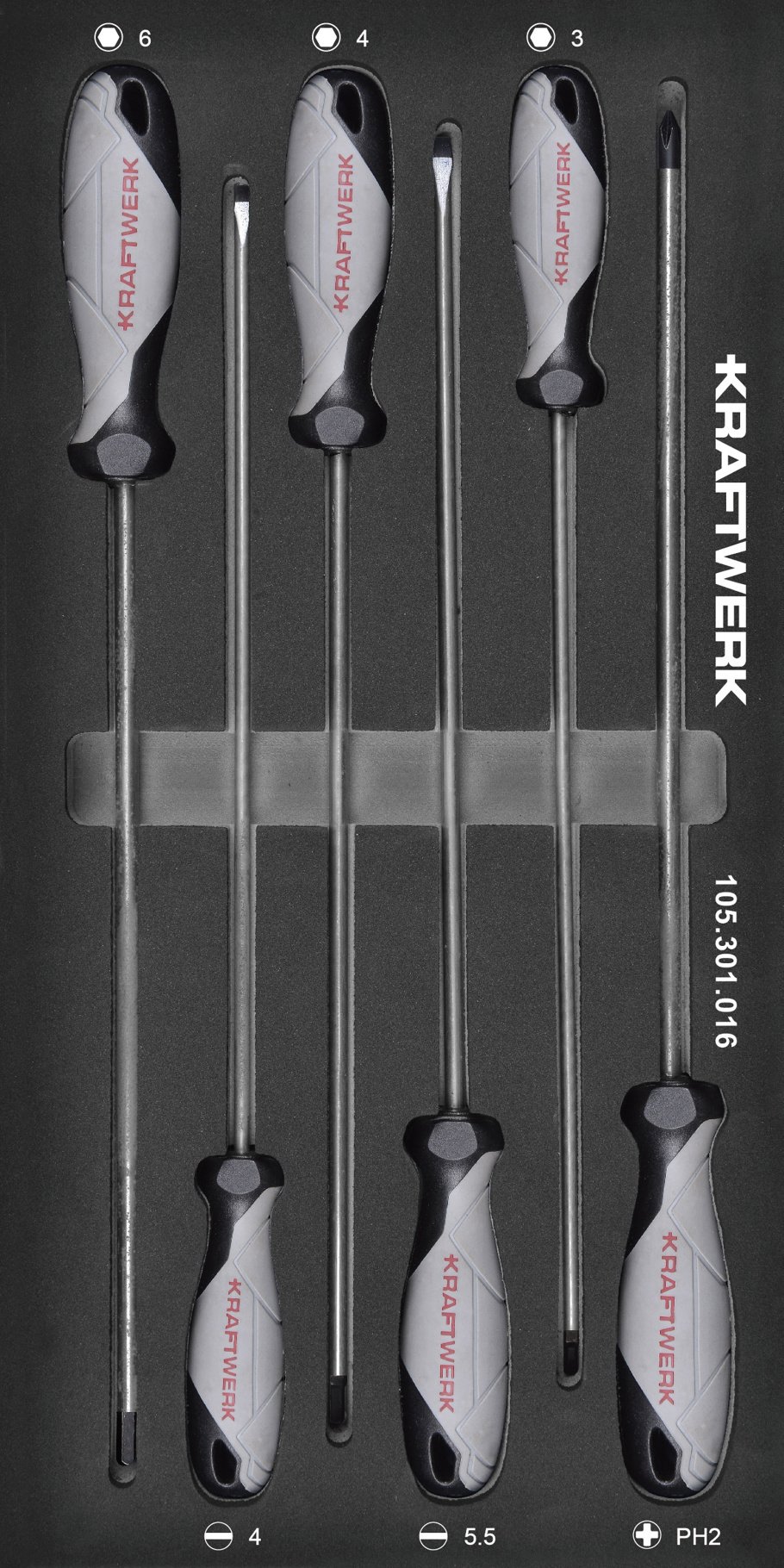 Ypač ilgų atsuktuvų komplektas KRAFTWERK BASIC LINE EVA 20 × 40 cm, 6 įrankiai